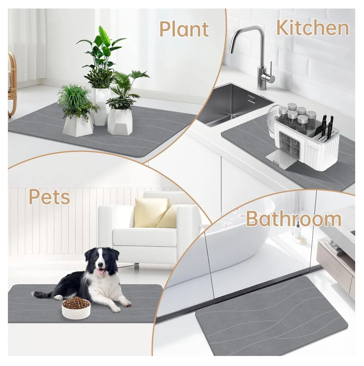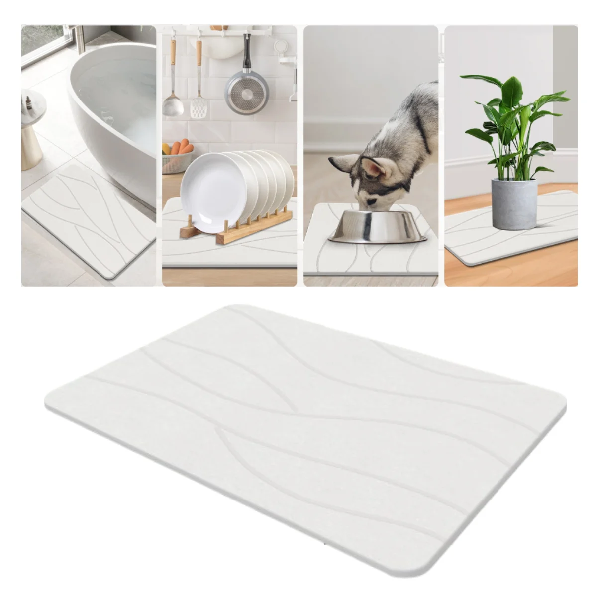 ✅ Material innovador: superficie de piedra diatomita / espuma tecnológica (dependiendo del modelo) que repele la humedad.
