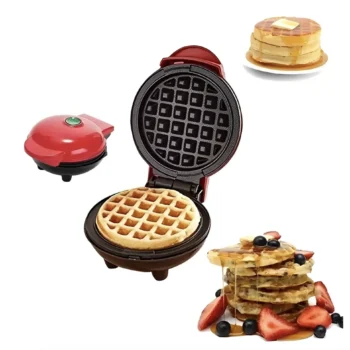 Prepara waffles caseros en minutos con esta práctica mini waflera compacta.